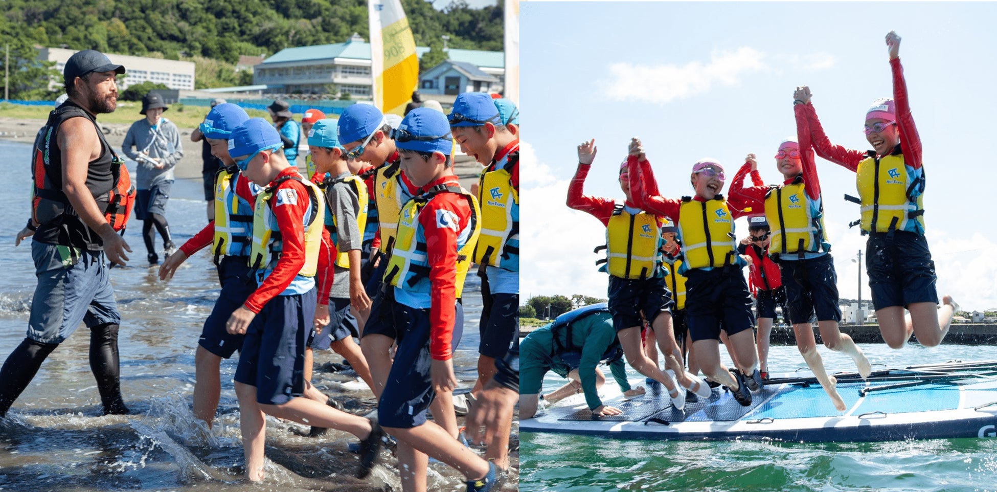 プログラムでは、海辺で活動する際に“自分の身を守り人を助ける”ための方法を学ぶことができる『海辺の安全教室』をはじめ、足立区としては初実施となる『SUP』や『シーカヤック』など3つのアクティビティを体験。事前に実施したアンケートでは、参加児童のうち約11%が「海に行ったことがない」と回答し、開会式では緊張した様子も見られましたが、プログラム終盤には笑顔で海に飛び込んだりするなど、各学校子どもたちの変化が大きく見える体験となりました。