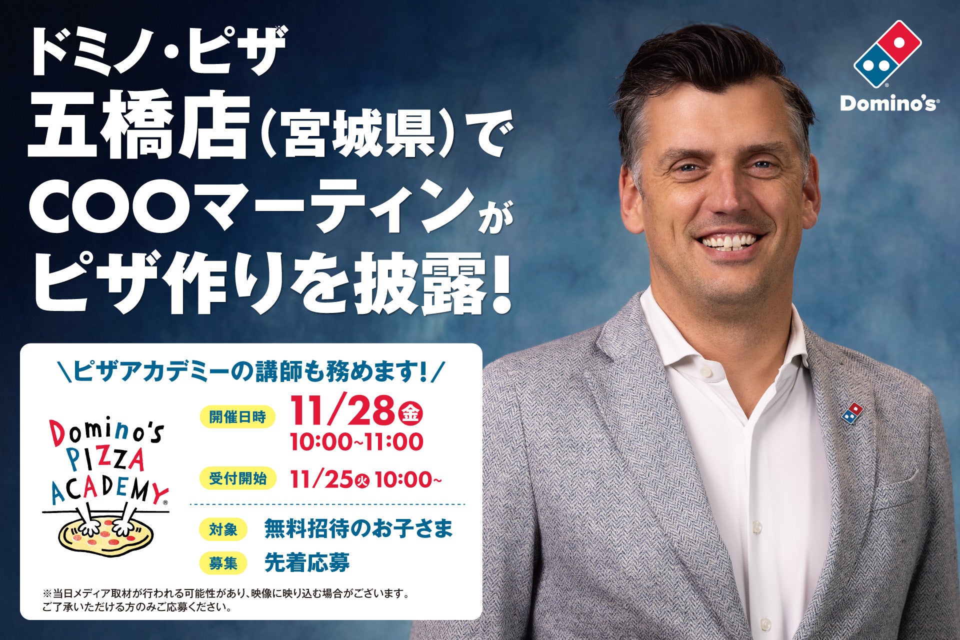 11月28日(金)11時~12時、ドミノ・ピザ 五橋店で特別イベントを開催。当日は、ドミノ・ピザ ジャパンのCOO(最高執行責任者)マーティン・スティーンクスがご注文いただいたピザをお作りします。学生時代にドミノ・ピザ オランダでクルーとして働き始めて以来、フランチャイズパートナー、台湾CEOなどを歴任し、世界中でピザ作りを続けてきた“現場のプロ”が、アツアツのピザをお作りします。さらに、五橋店11月28日(金)10時開催のピザアカデミーは、マーティンが講師役を務めます。マーティン自ら生地をのばし、焼き上げる姿を間近で見られる貴重な機会に、ぜひこの機会にご来店ください!