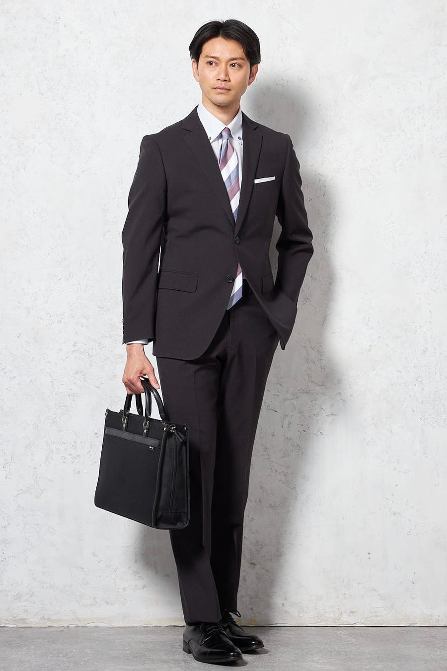 360度ストレッチと軽量で動きやすさと着心地のラクさを実現し、防シワ加工&パンツプリーツ加工で、シワになりにくく長時間の着用でもきちんと感と清潔感をキープな好印象スーツです。上下ウォッシャブルのため暖かくなり汗をかく季節でもご自宅で簡単にケアが可能な充実機能の一着となっております。