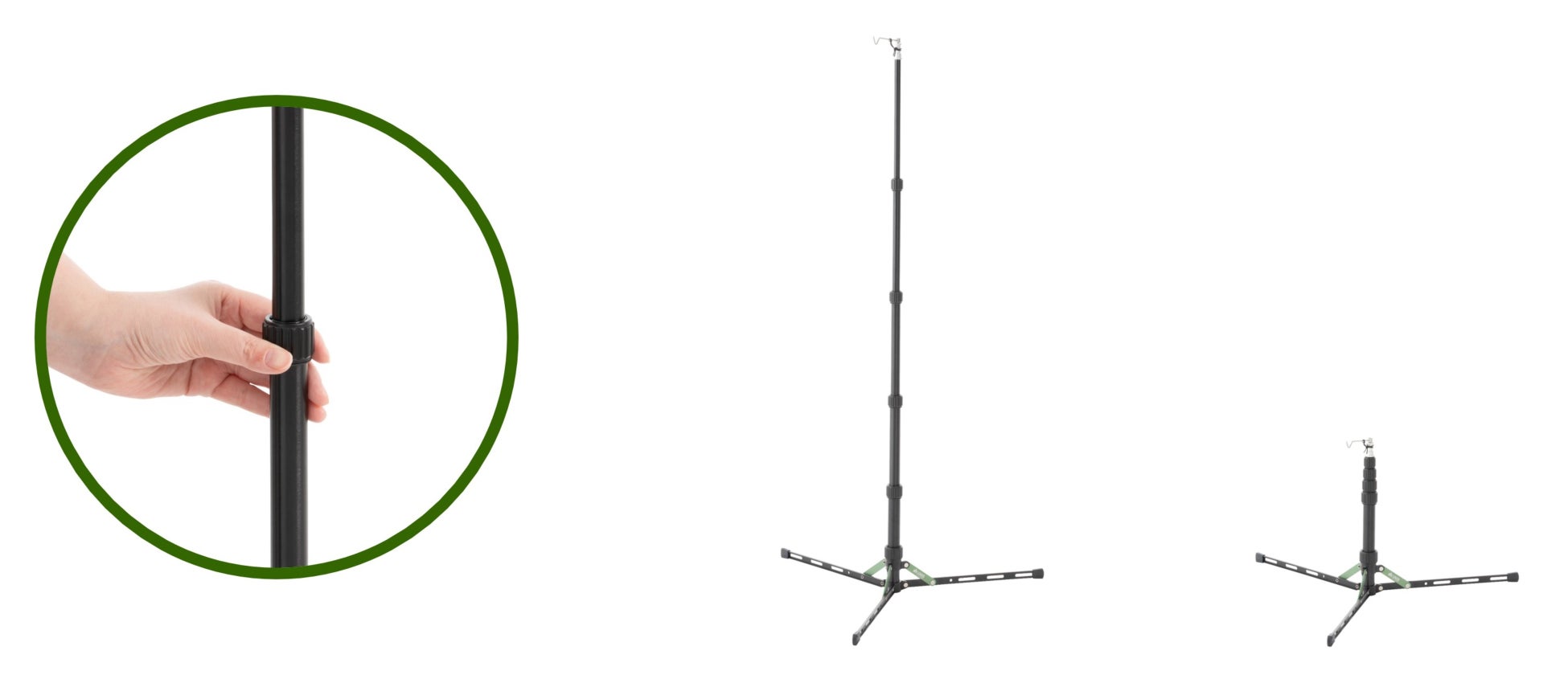 高さが自由に調節可能で、コンパクトに収納できて持ち運びに適した「ハンディフラットランタンポール」を、アウトドアライフでぜひともご活用ください。