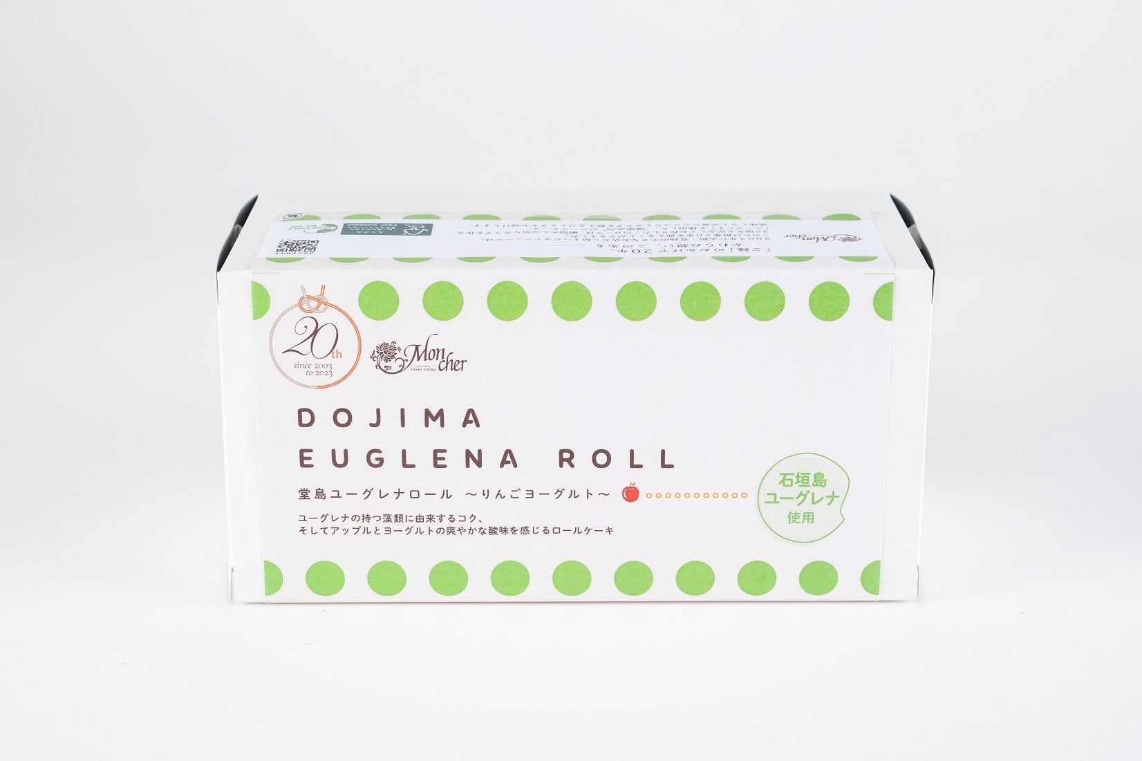 「堂島ユーグレナロール~りんごヨーグルト~」は、石垣島ユーグレナの持つ藻類に由来するコクやりんごとヨーグルトのさわやかな酸味を感じるロールケーキです。生地のしっとりとした食感、さわやかなヨーグルトクリームの味わい、アクセントになるりんごのコンポートと、食感のメリハリや食べ応えも楽しめます。また、人間に必要な59種類の豊富な栄養素(ビタミン・ミネラル・アミノ酸など)がバランスよく含まれるスーパーフード・石垣島ユーグレナが、生地とクリームに合わせて29億個(2,900mg)入った栄養たっぷりなロールケーキです。