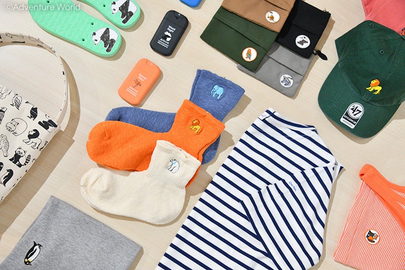 パークの動物イラストを使⽤した12社とのブランドコラボが実現し、全14アイテムの商品が誕⽣しました。商品はPOPーUP STOREのみでの限定販売です。