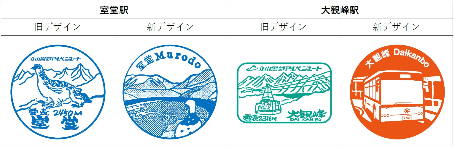 室堂駅と大観峰駅のスタンプデザインが2025年4月15日(火)より変更します。
