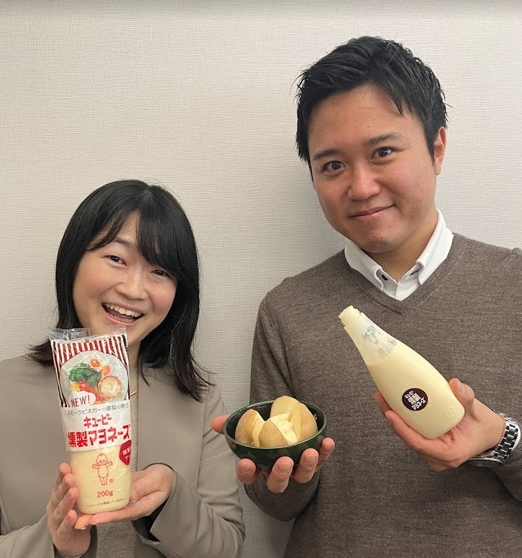 発売以来、燻製料理が好きな方から手軽に燻製風味が楽しめると嬉しいお声をいただいています。実は私たちも燻製風味が大好きで、日頃自宅でお酒とともに、茹でたじゃがいもやゆで卵に「燻製マヨネーズ」をかけて楽しんでいます。今回のリニューアルでより一層燻製風味が感じられる仕立てになりました。社内の燻製マヨネーズユーザーに試食してもらったところ大変好評で、担当の私たちも発売が楽しみでならない自信作です。