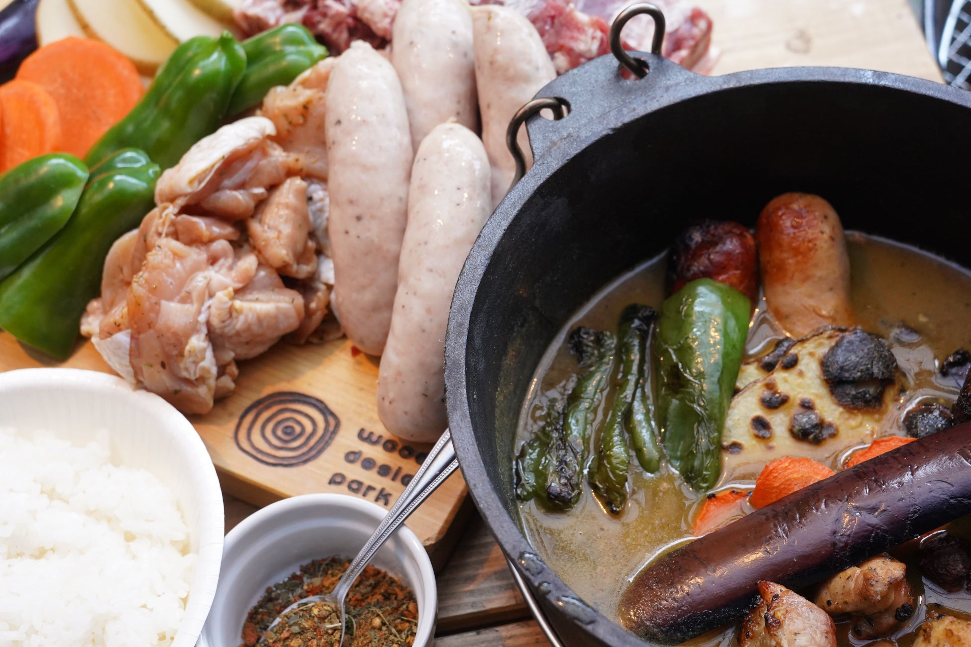 「ご宿泊者様&冬季期間限定」寒い冬でも暖まりながらグランピングをお楽しみいただける、スープカレーBBQセットを販売いたします。【ウッドデザインパーク岡崎】