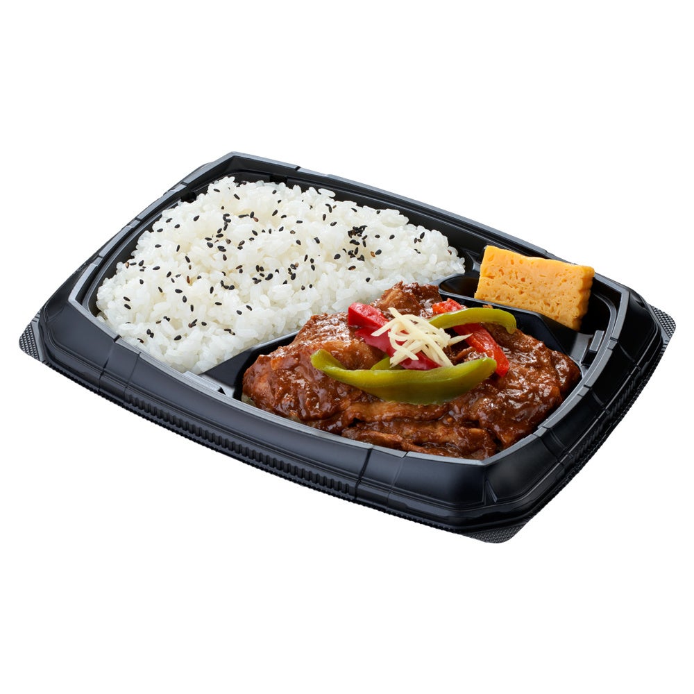商品特長:生姜焼きは、豚バラに、生姜・にんにくを効かせたタレを絡めることで、ご飯がすすむ一品です。2食のピーマン、千切り生姜をトッピングし、玉子焼きを添えることで彩りもよい仕立てとなっています。