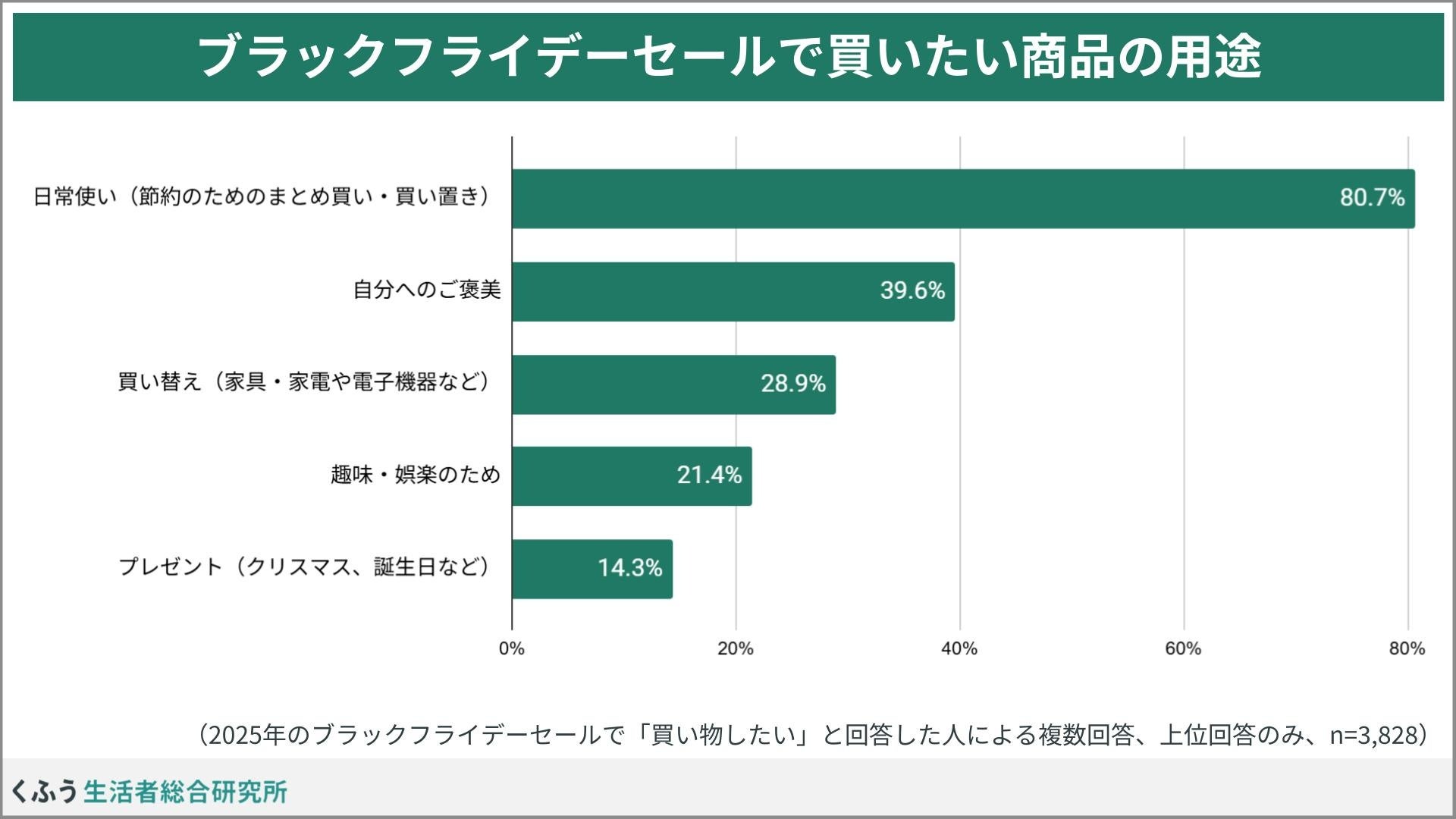 そのため、用途は「日常使い」が約8割と圧倒的に多く、物価高で節約志向が続く中、少しでも安くまとめ買いや買い置きしておきたいという気持ちが表れています。