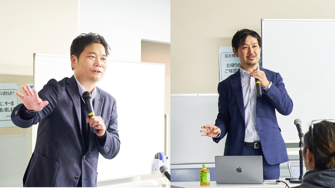 セミナーには当社の商品開発部部長 工藤 達哉(くどう たつや)と新規営業部部長 佐藤 泰春(さとう やすはる)の2名が登壇し、来場者にふるさと納税制度や返礼品開発についてのノウハウなど、事例を示しながら説明しました。参加者たちはメモを取りながら、自社の新たな販路開拓の話を真剣に聞き入っていました。