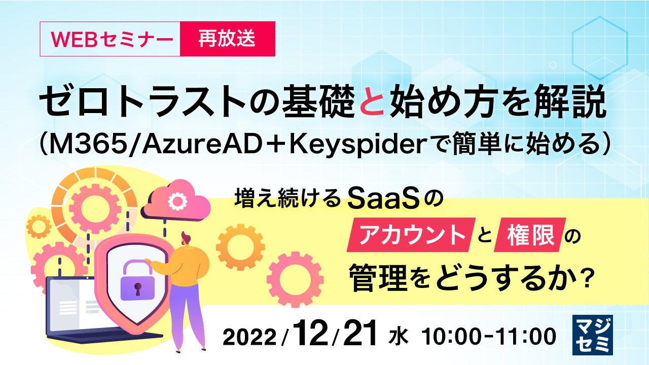マジセミ株式会社はゼロトラストの基礎と始め方を解説(M365/AzureAD+Keyspiderで簡単に始める)というテーマのウェビナーを開催します。