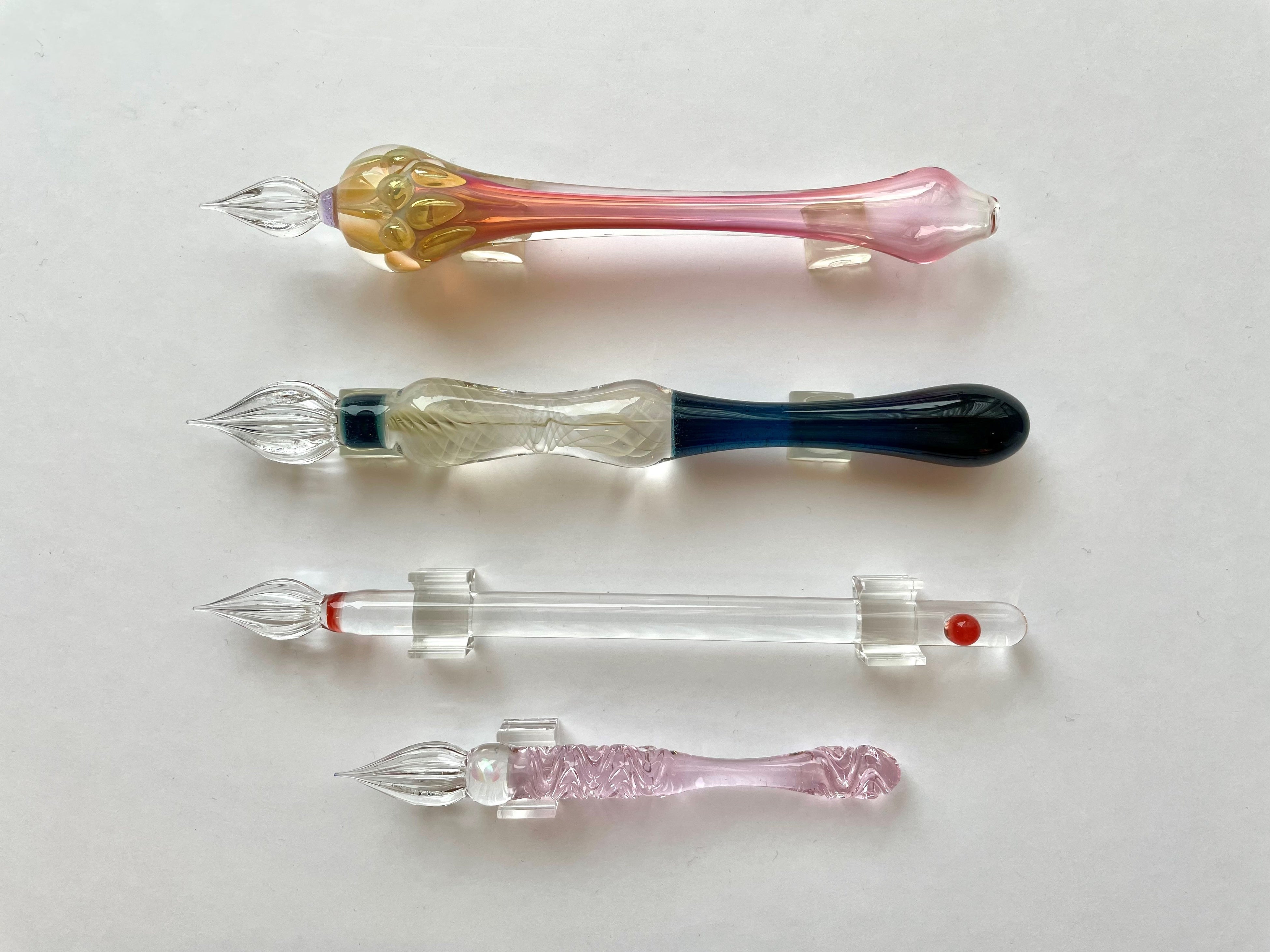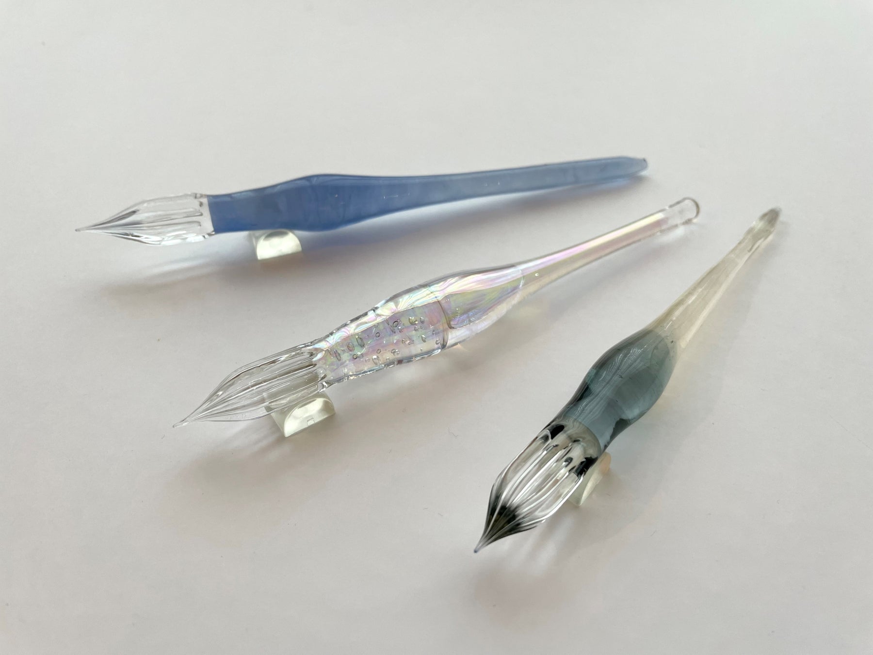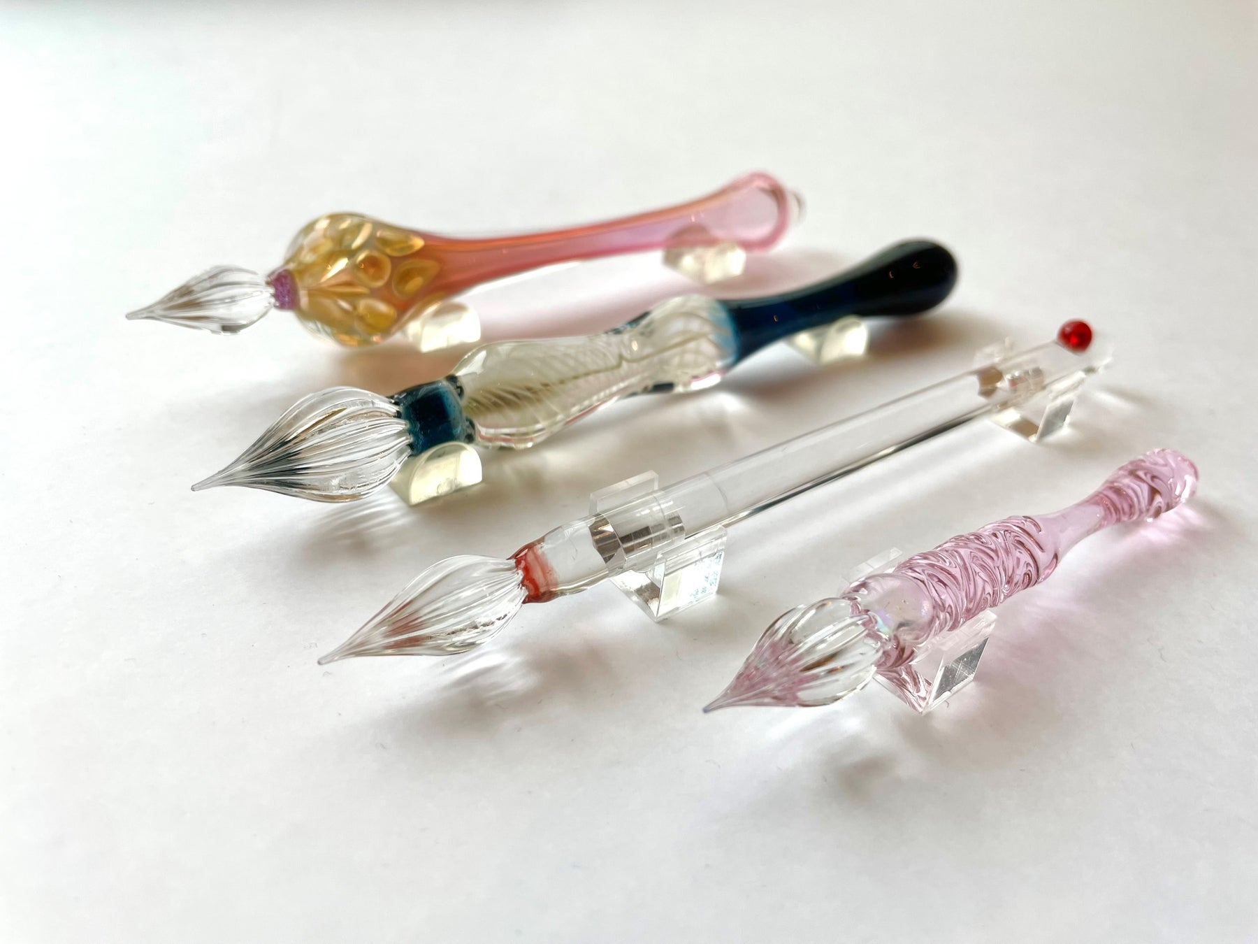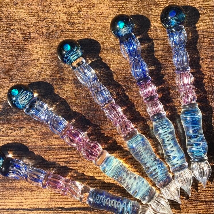 今回は、気温の影響で結晶化するストームグラスとペンが融合したガラスペン(※画像中央)など人気のガラスペンを多数ご紹介します。