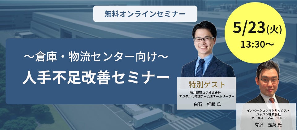 倉庫・物流センター向け人手不足改善セミナー(イノベーションマトリックス・ジャパン株式会社様主催)にて、船井総研ロジの経営コンサルタントが講演します
