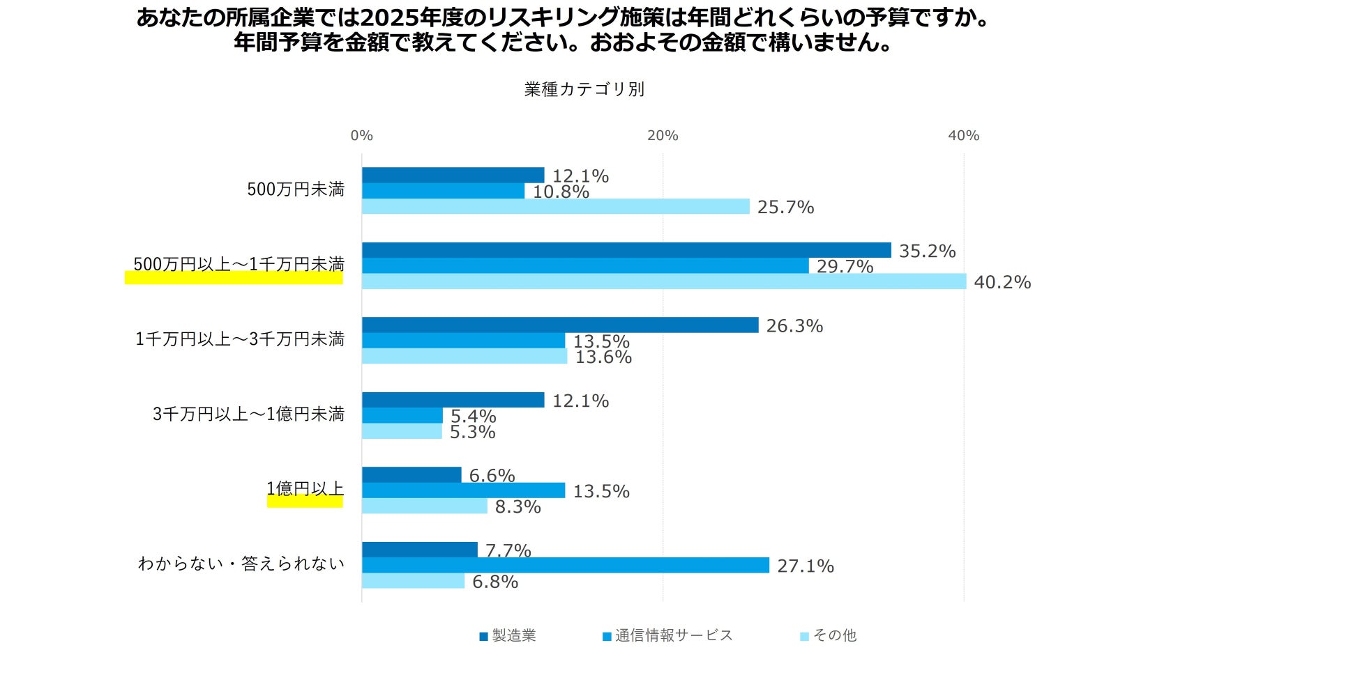~2025年度のリスキリング予算は500万円以上~1千万円未満が約40%に~