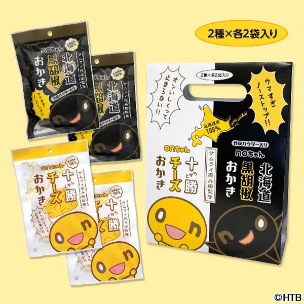 ■商品名:onちゃん十勝チーズおかき&noちゃん北海道黒胡椒おかきセット(2種×各2袋入り)