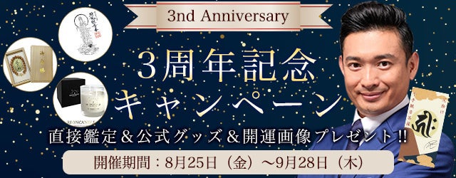 皆様に支えられて、『木下レオンの占い』は3周年を迎えることができました。そこで、日頃よりご愛顧いただいている皆様へ感謝を込めて、木下レオンの公式グッズを抽選で9名様にプレゼントいたします。また、キャンペーンにご参加いただいた方全員に特製開運画像のプレゼントもございます。
