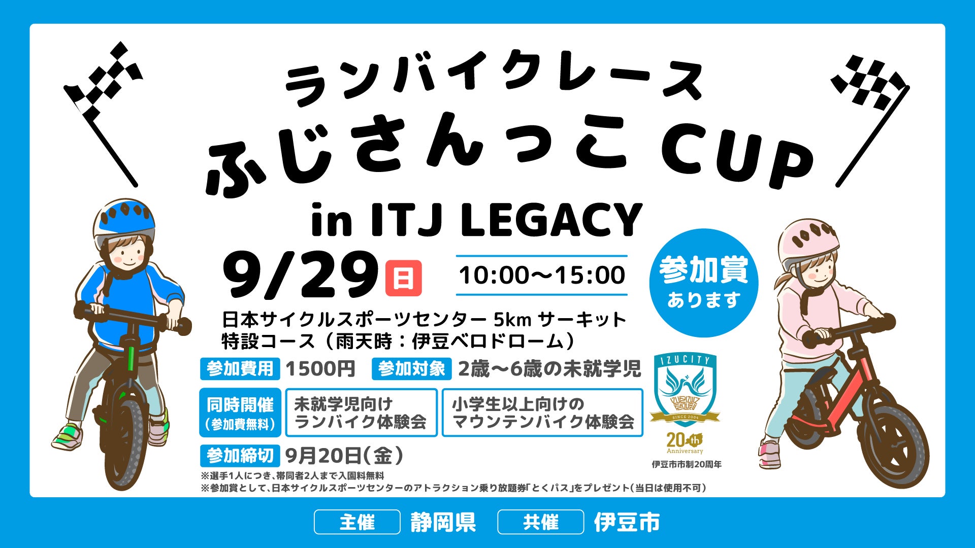 静岡県主催・伊豆市共催による、未就学児対象のランバイクレース「ふじさんっこCUP in ITJ LEGACY」を開催します。