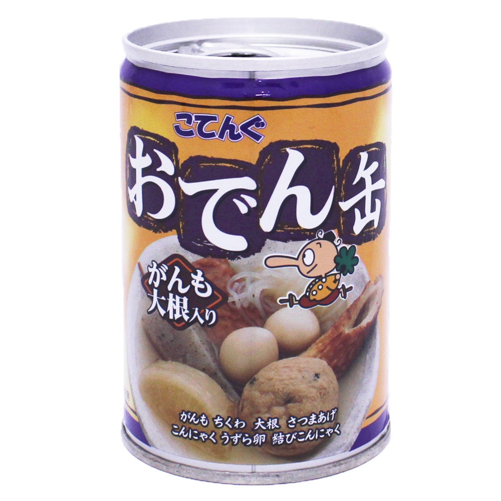 そのまま手軽におでんが食べられるおでん缶!こんにゃく、大根、うずら卵、ちくわ、さつまあげ、がんもどきが入った具沢山が魅力です。吟味された新鮮な原材料の持ち味を活かしうす味に仕上げました。コンビニおでんならぬエキナカおでんが登場です!