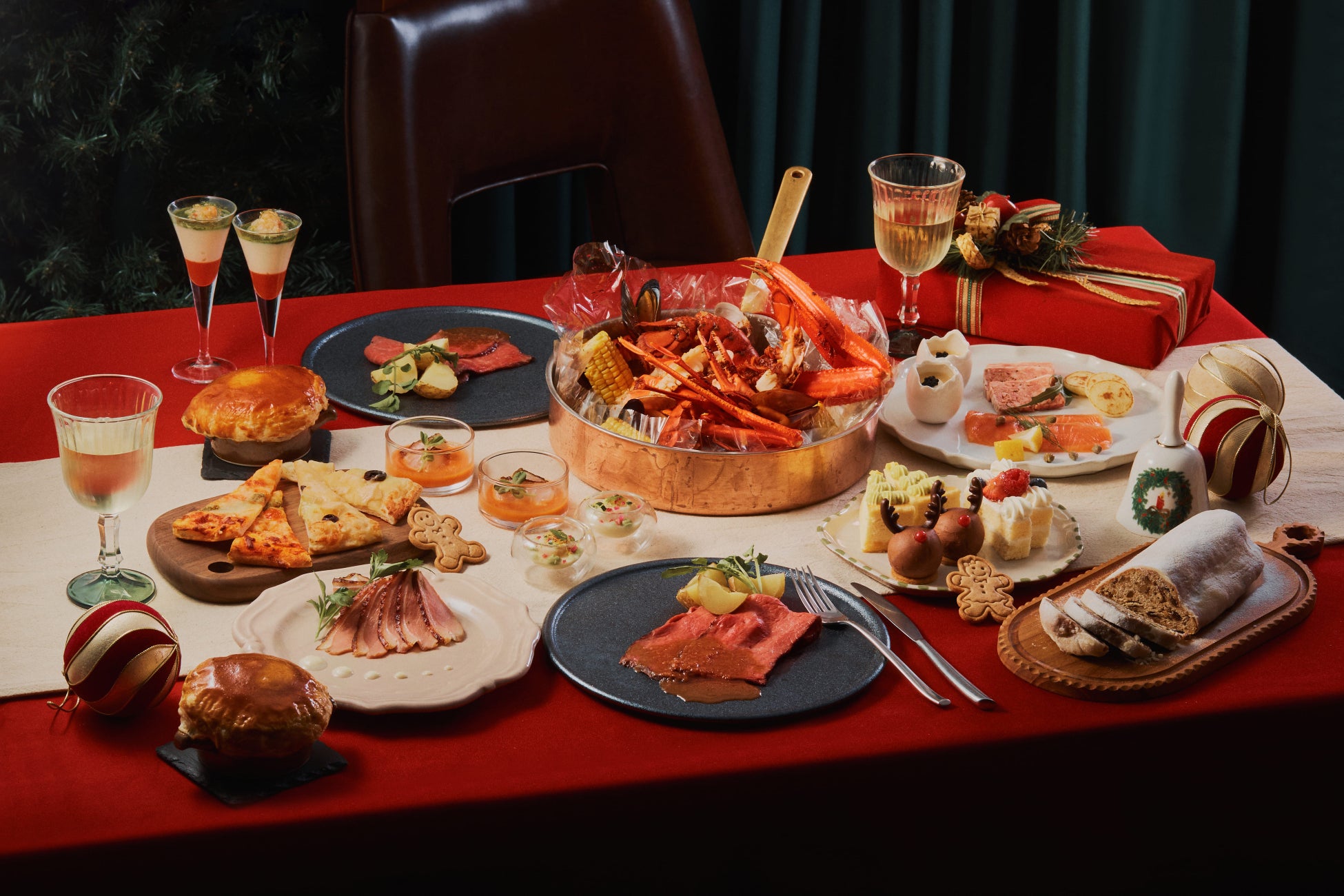 12月20日(金)~25日(水)のディナーでは、グランドメニューに加えて、特別メニューが登場する『Christmas Dinner Buffet』を開催。おひとり様まるごと1尾の「オマール海老」や「蟹」などの海の幸をオリジナルスパイスで調理した「ワイルドシーフード」(おひとり様1皿限定)や、「和牛のローストビーフ」など、シェフ渾身の料理をラインアップ。ノスタルジックモダンな空間で“クリスマスホームパーティー”をお楽しみください。