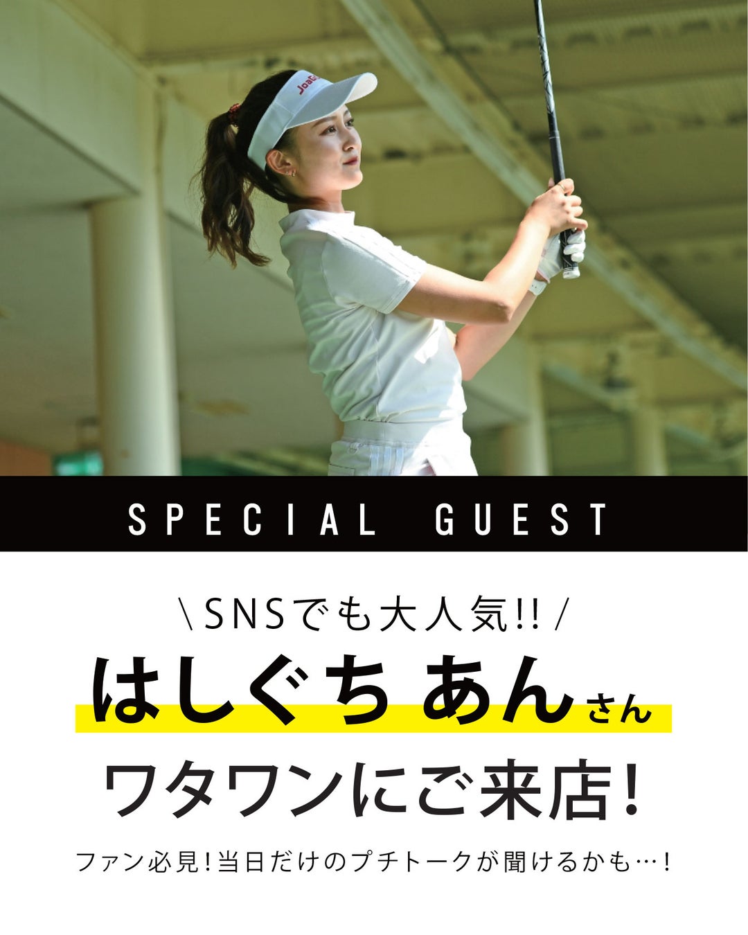 さらに、SNSでも大人気のゴルフインフルエンサー「はしぐちあん」さんがWHATAWONに来店!当日限定のトークイベントもお楽しみに!