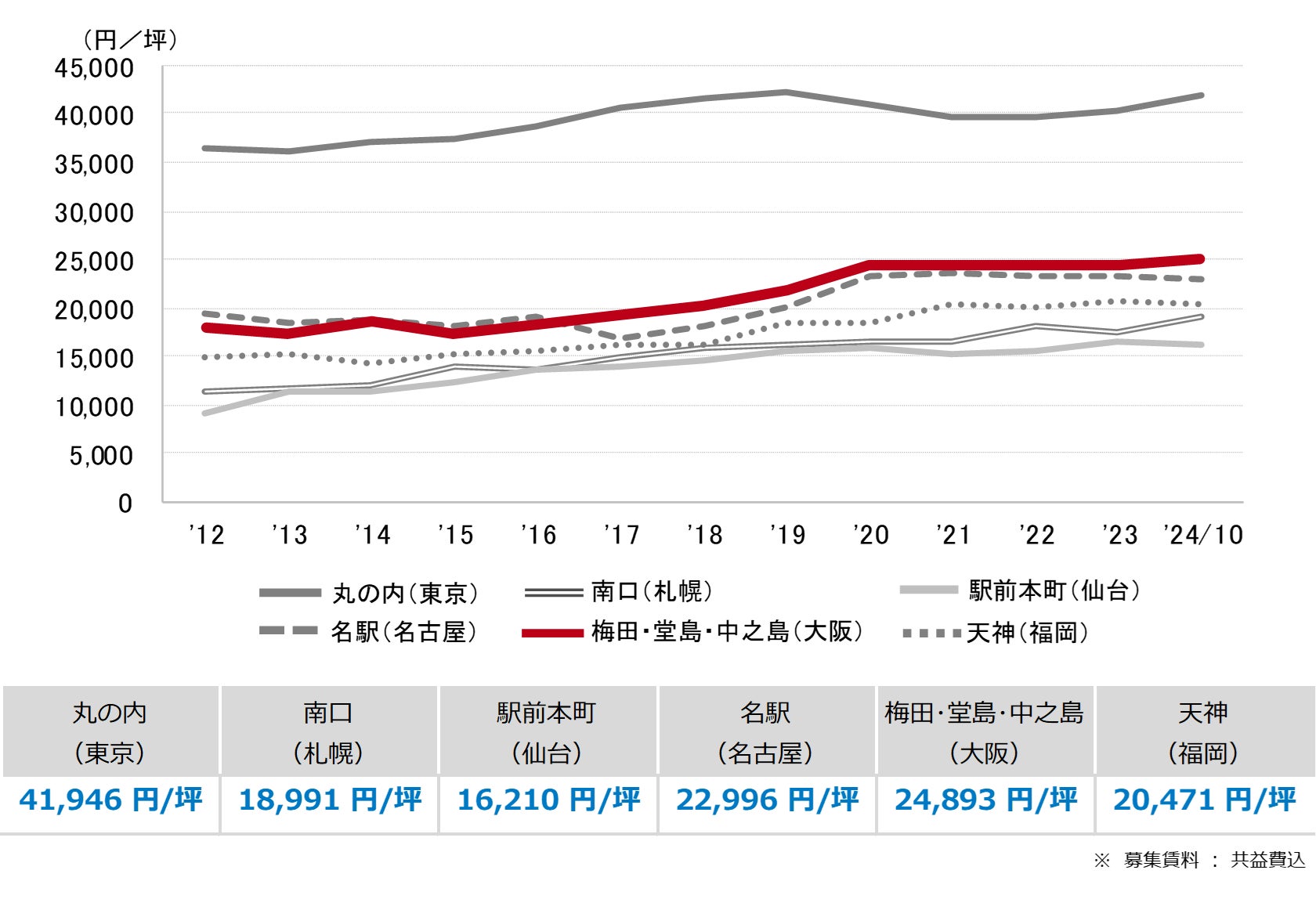 <募集賃料の推移(6大都市 大規模ビル・主要駅前地区)>