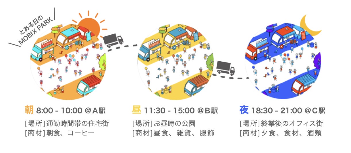 さらにはキッチンカーだけでなく、MOBIX(Mobility Box=移動する箱)と称した様々な移動販売車を展開することで、 「店に行く」から「店が来る」文化創造を行い、移動できるからこそのメリットを生かして、住宅団地や公園、商店街な どの活性化・地域創生を行っています。