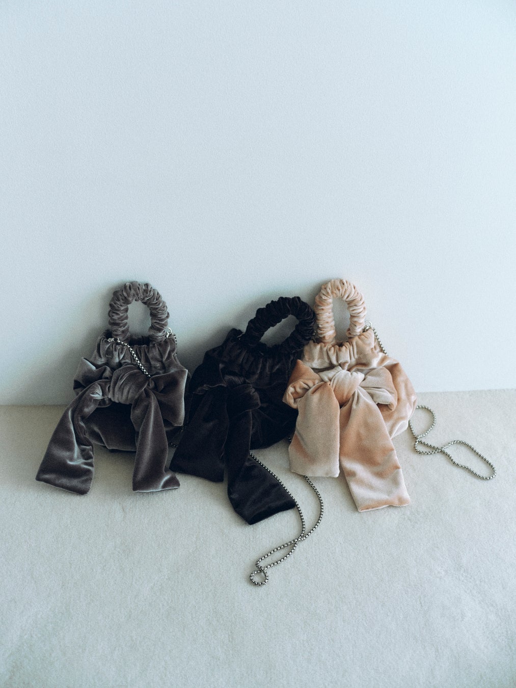 大きなリボンにベロア素材が特徴的なショルダーバッグ。