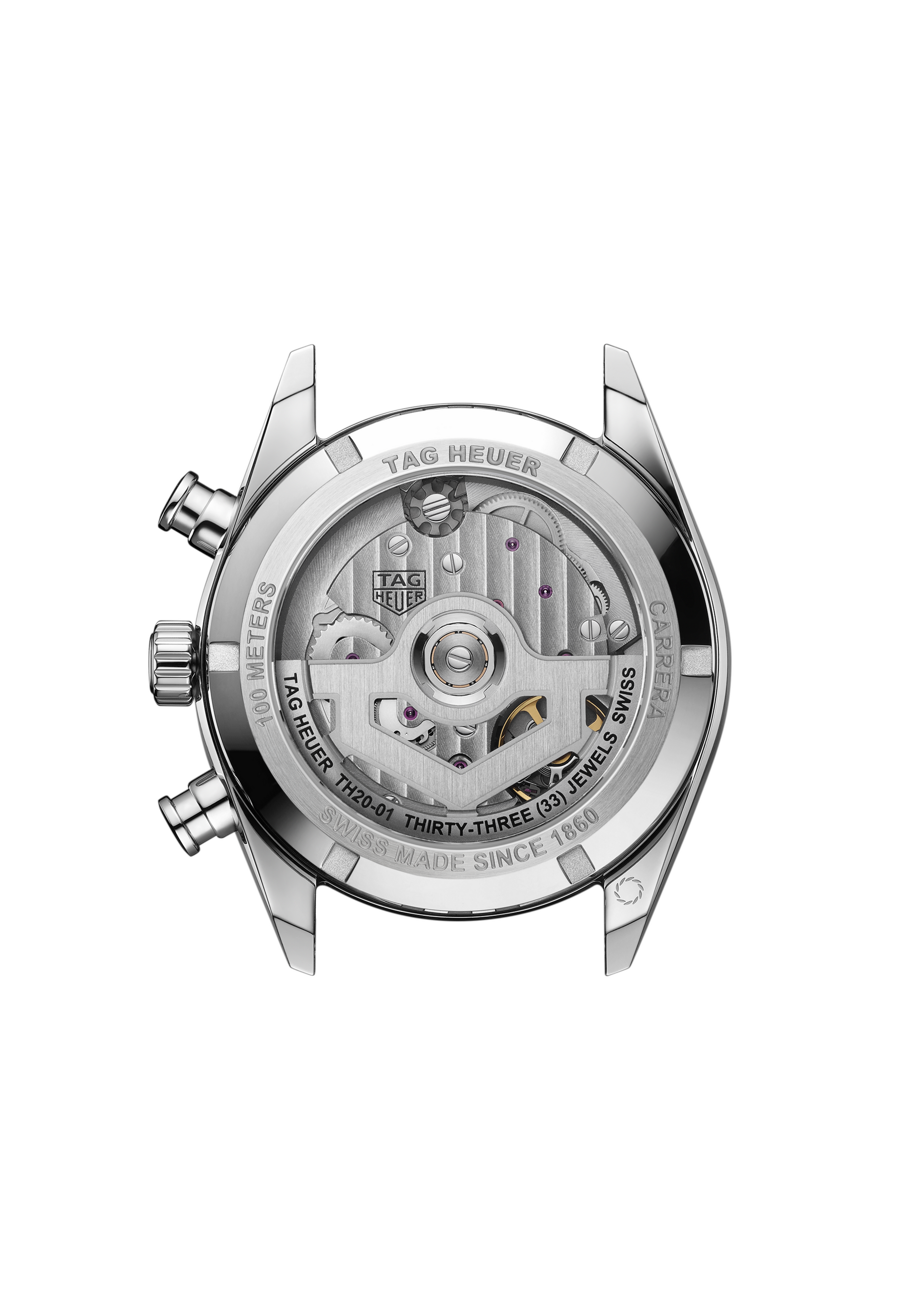 ダイヤルの下で鼓動を刻むのは、卓越した時計製造技術を体現し、約80時間という優れたパワーリザーブを誇る自社製ムーブメント「TH20-01」。シームレスな作動を実現する垂直クラッチ、正確で確かな操作性をもたらすコラムホイール、そして双方向自動巻き上げ機構を備え、滑らかで高精度なクロノグラフ機能を実現しています。