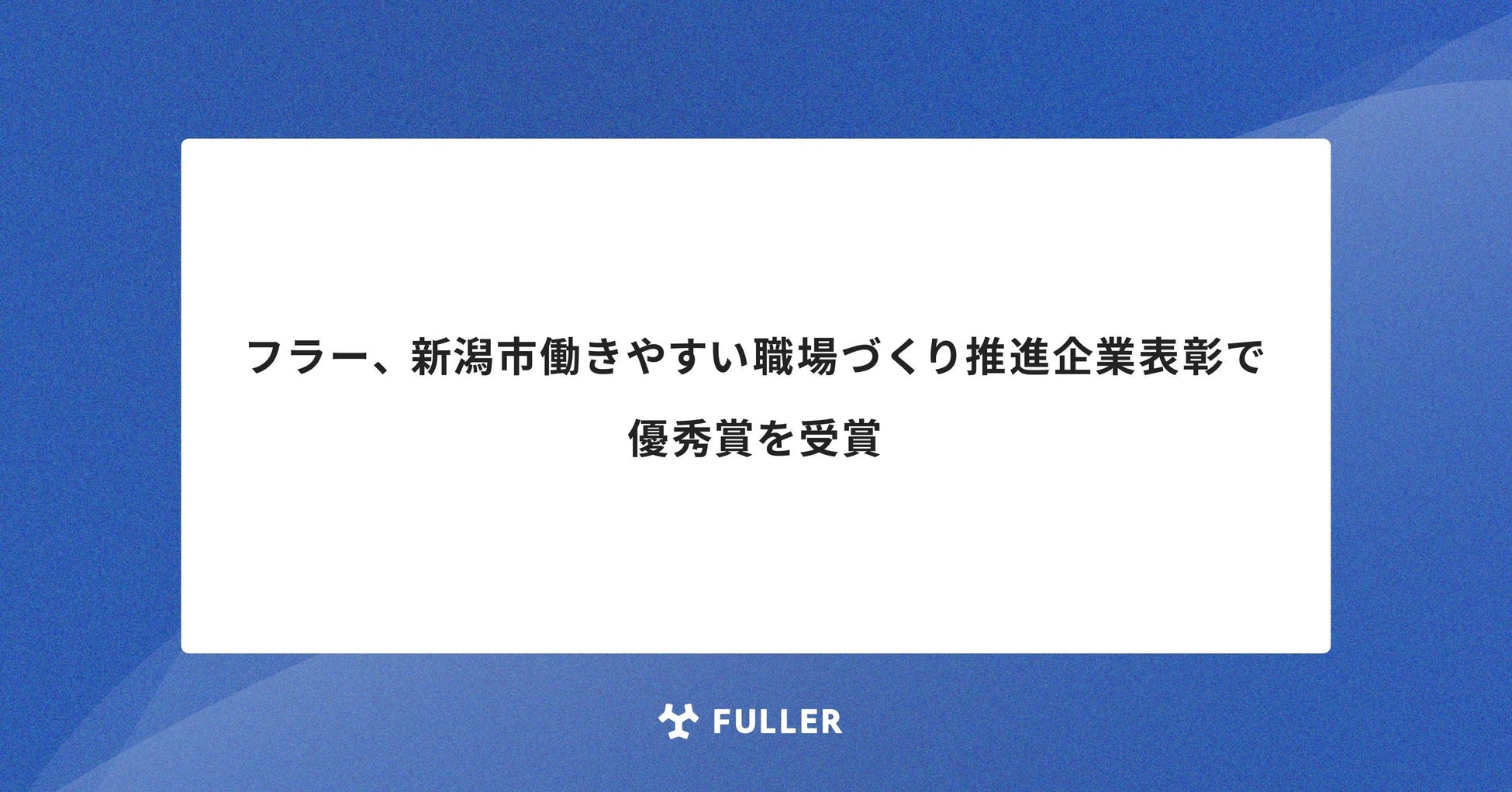 フラー株式会社(本社:新潟県新潟市、代表取締役社長:山﨑 将司、以下「フラー」)はこのほど、令和7年度新潟市働きやすい職場づくり推進企業表彰(主催:新潟市)にて優秀賞を受賞しましたのでお知らせいたします。