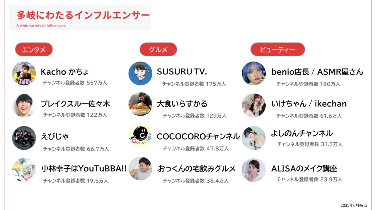 Talema.の登録クリエイター数は1,750組以上*²にのぼり、ジャンルはエンタメ、ゲーム、グルメ、ビューティーなど多岐にわたります。