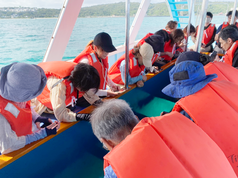 総会翌日の11日(土)は、サンゴの植え付けと赤土流出対策として実施している植栽活動を視察しました。天候にも恵まれ、ふだん見ることができないもずくを育てているようすや、収穫後の処理の現場も見学しました。