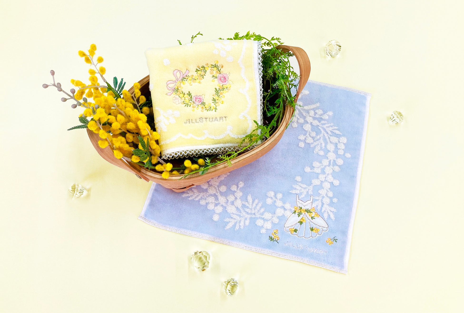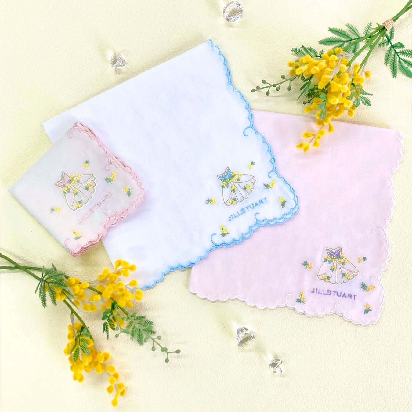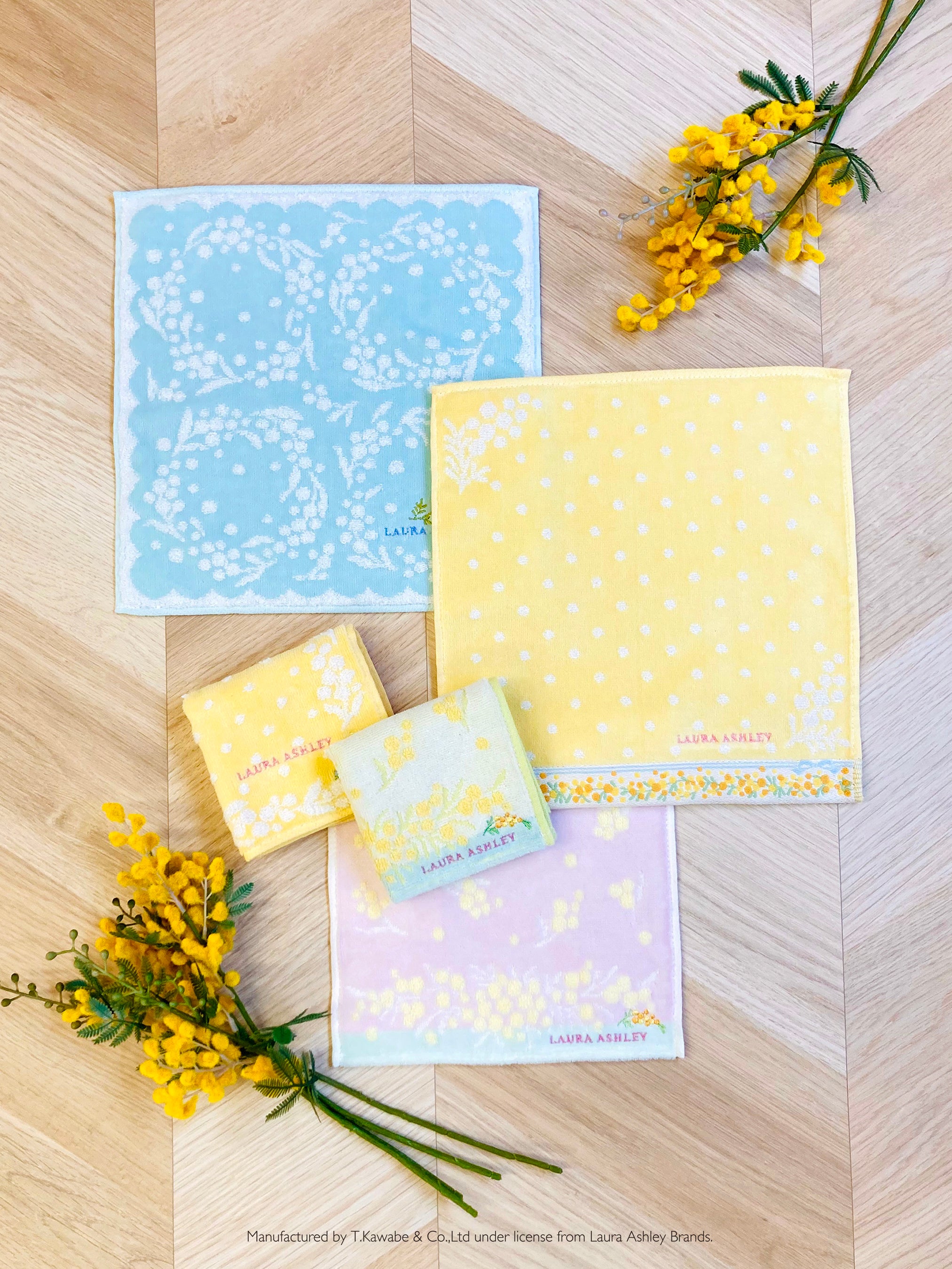 服飾雑貨メーカー川辺株式会社 「ジルスチュアート」「ローラ アシュレイ」より、ミモザ柄ハンカチアイテム新登場!