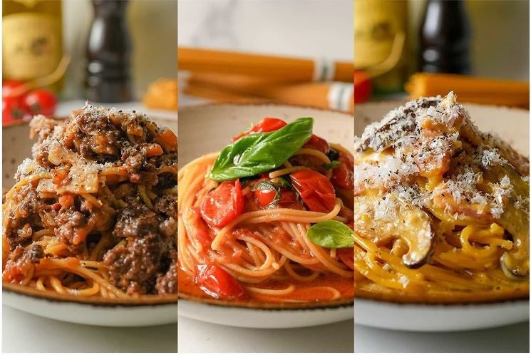 3種パスタセット(チェリートマトとバジル・有機椎茸のカルボナーラ・短角和牛のボロネーゼ)