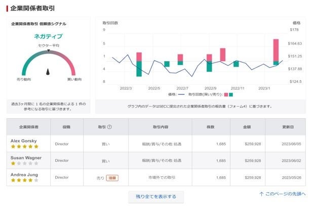 - アナリスト評価や企業関係者取引情報、ヘッジファンド取引動向をチャートで見やすく提供 -