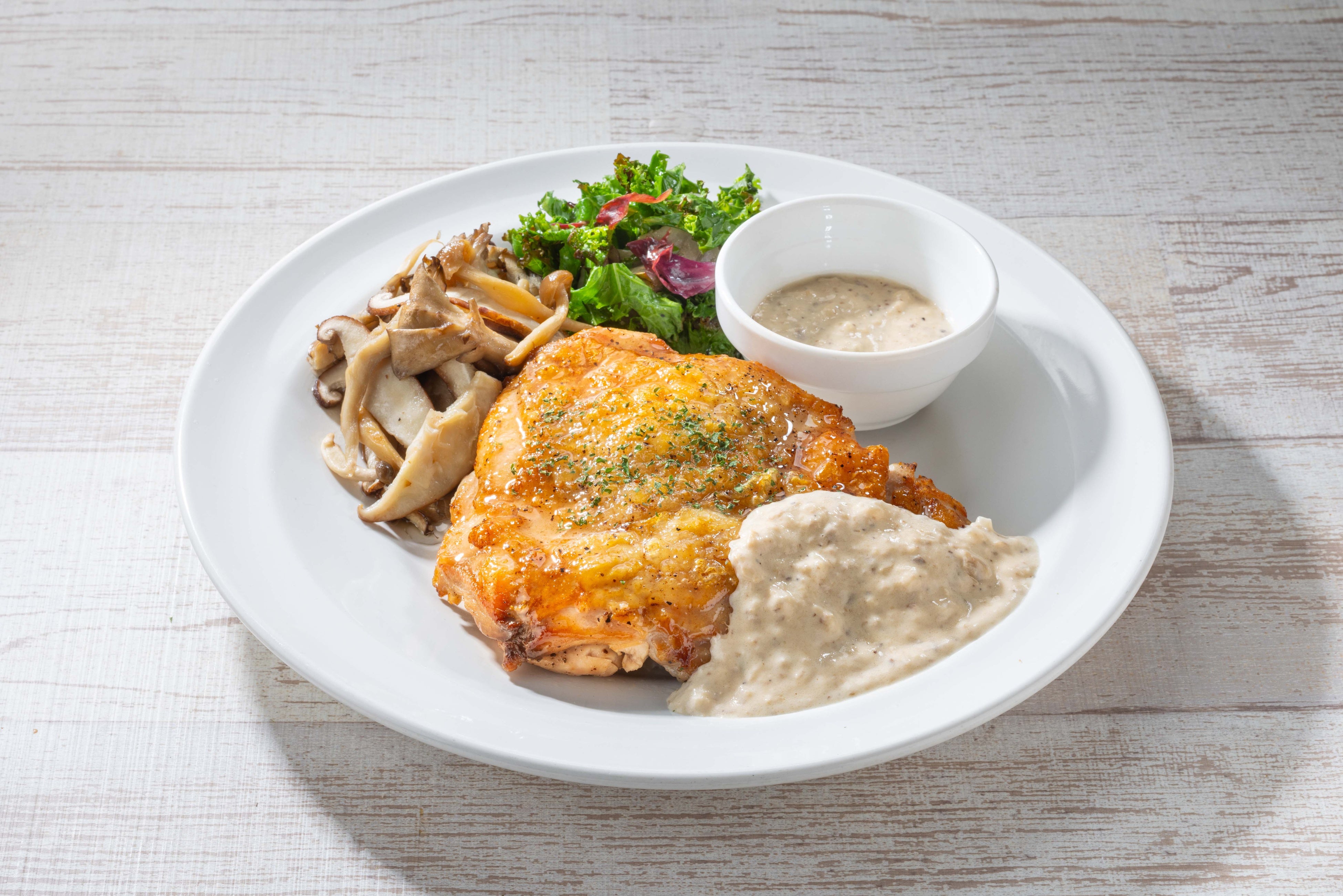 チキンステーキのパリパリ感と昔のレシピのガーリックソースが復活。