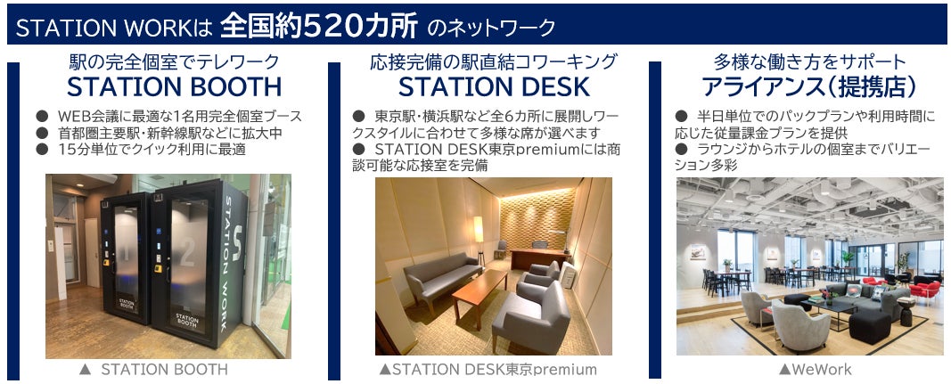 ※3 個人会員の登録にはJRおでかけネット(https://www.jr-odekake.net/newway/workplace/)またはSTATION WORK専用WEBサイト(https://www.stationwork.jp/)からの登録が必要です。法人会員登録には、別途JR東日本との法人契約が必要です。