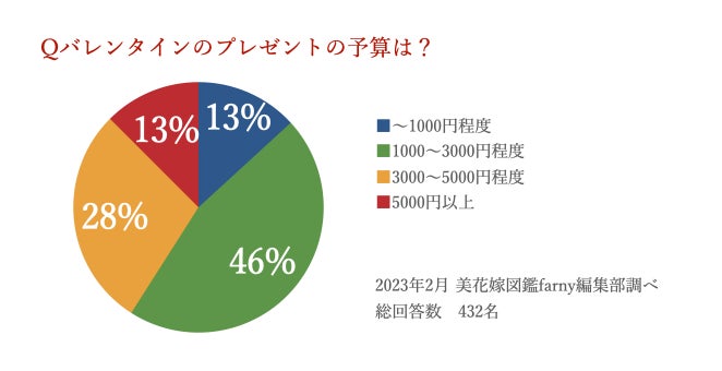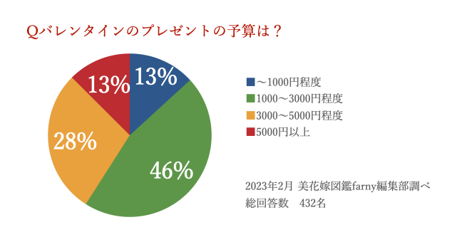 - バレンタインの予算は1000円〜3000円程度が46%と一番多い結果に。