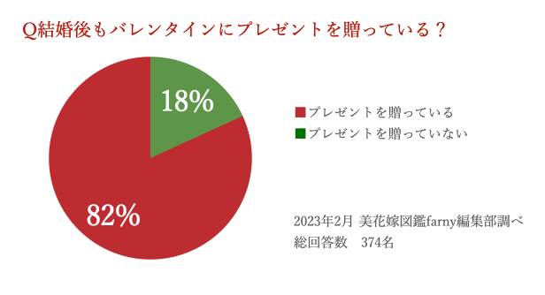 - 8割以上の方が結婚後も旦那さんにバレンタインで贈り物をしていると回答。