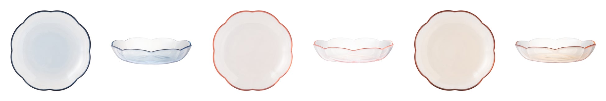 スカラップ状のリムがアクセントとなり、食卓に花が咲いたような華やかな印象を添えます。