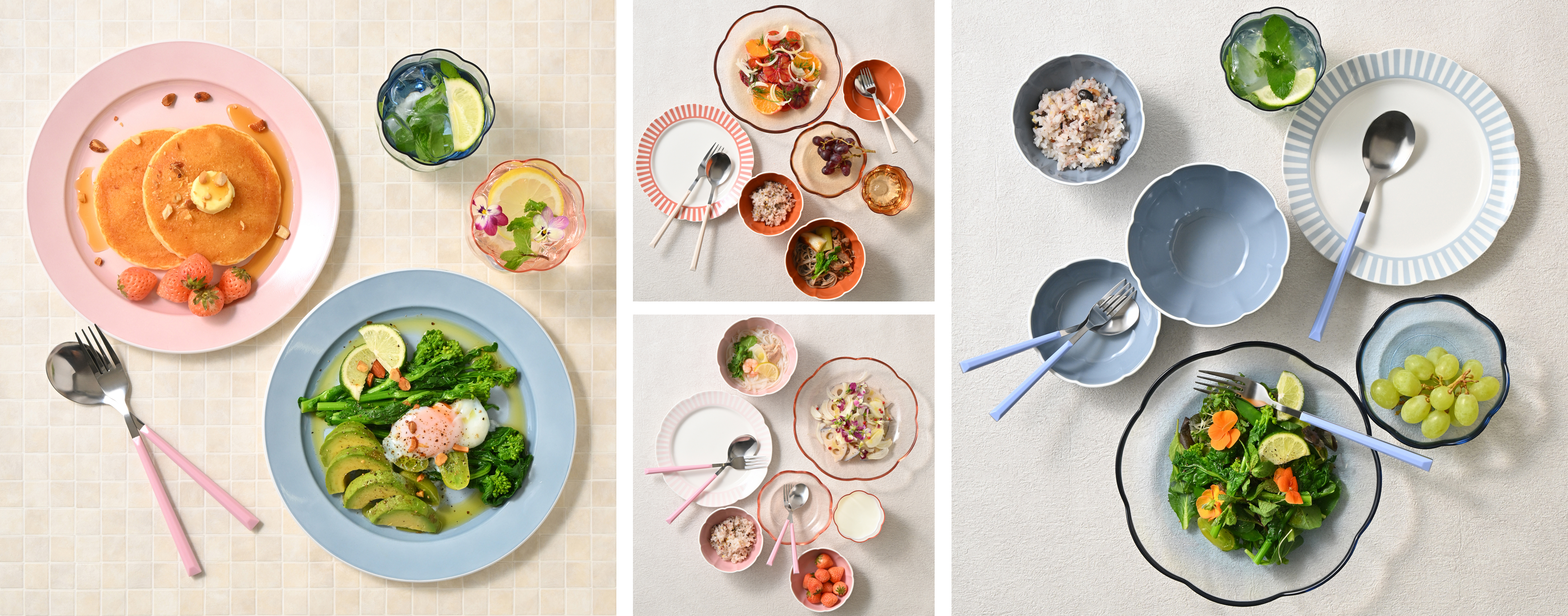 サラダやカルパッチョ、アサイーボウルなどの色彩豊かなヘルシーメニューを一層美味しそうに引き立て、視覚からも満足感を感じられるシリーズです。