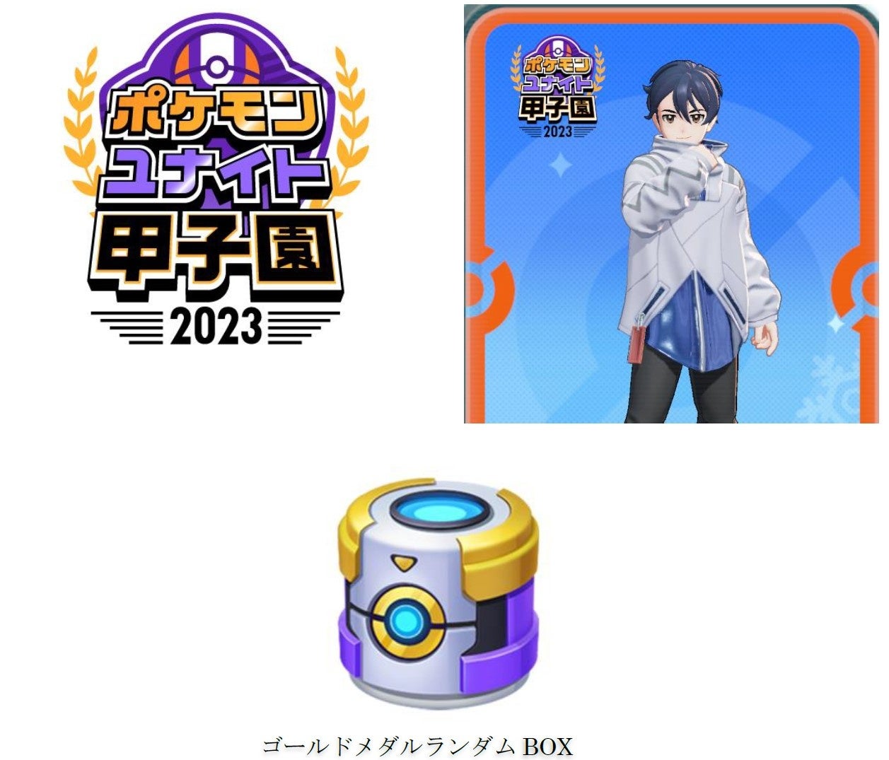大会参加者全員に『ポケモンユナイト』のトレーナーフォトに使用できる「シール」(ポケモンユナイト甲子園2023バージョン)を参加者特典としてプレゼントいたします。今大会の大会ロゴを採用し、参加した思い出をゲーム内に飾ることができます。また各地域の予選大会でベスト16まで勝ち残ったチームには、選手それぞれにゴールドメダルランダムBOXを3つずつプレゼントいたします。手に入るメダルはランクマッチなどで使用できます。