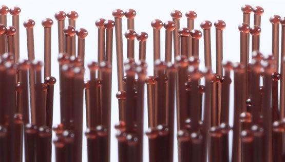 頭皮へのフィット感を高めるために、中央にはピンを植毛せず、ピン全体は緩やかに傾斜するように配置しました。