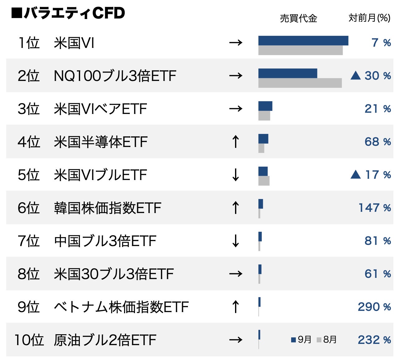 ※バラエティCFDランキングには、ETF(株価指数連動型)を参照原資産とする株価指数CFDが含まれます。