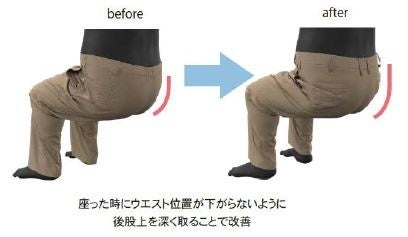 ・後ろ股上深めで座った時にウエスト位置が下がりにくい
