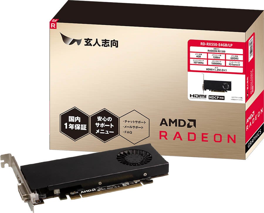 PCパーツブランド「玄人志向」から Radeon RX 550 搭載のグラフィックボードを発売
