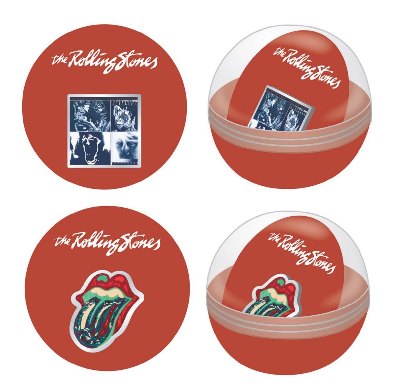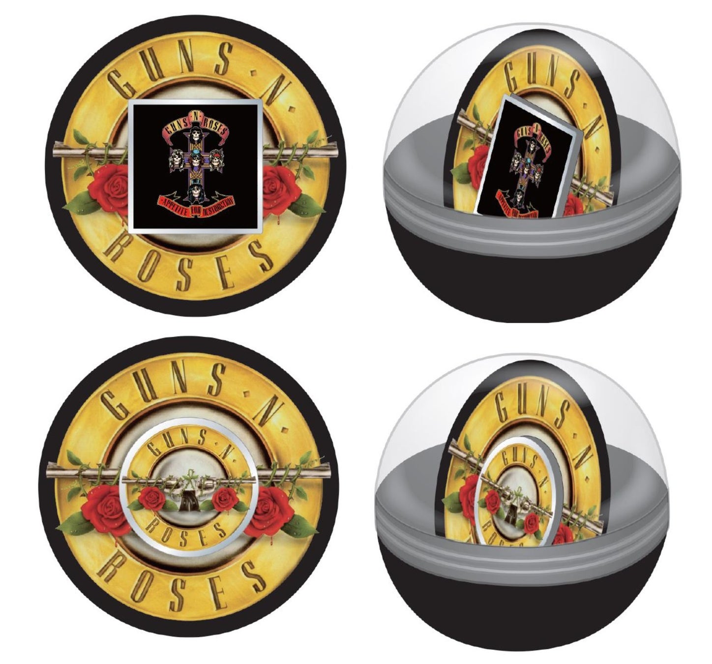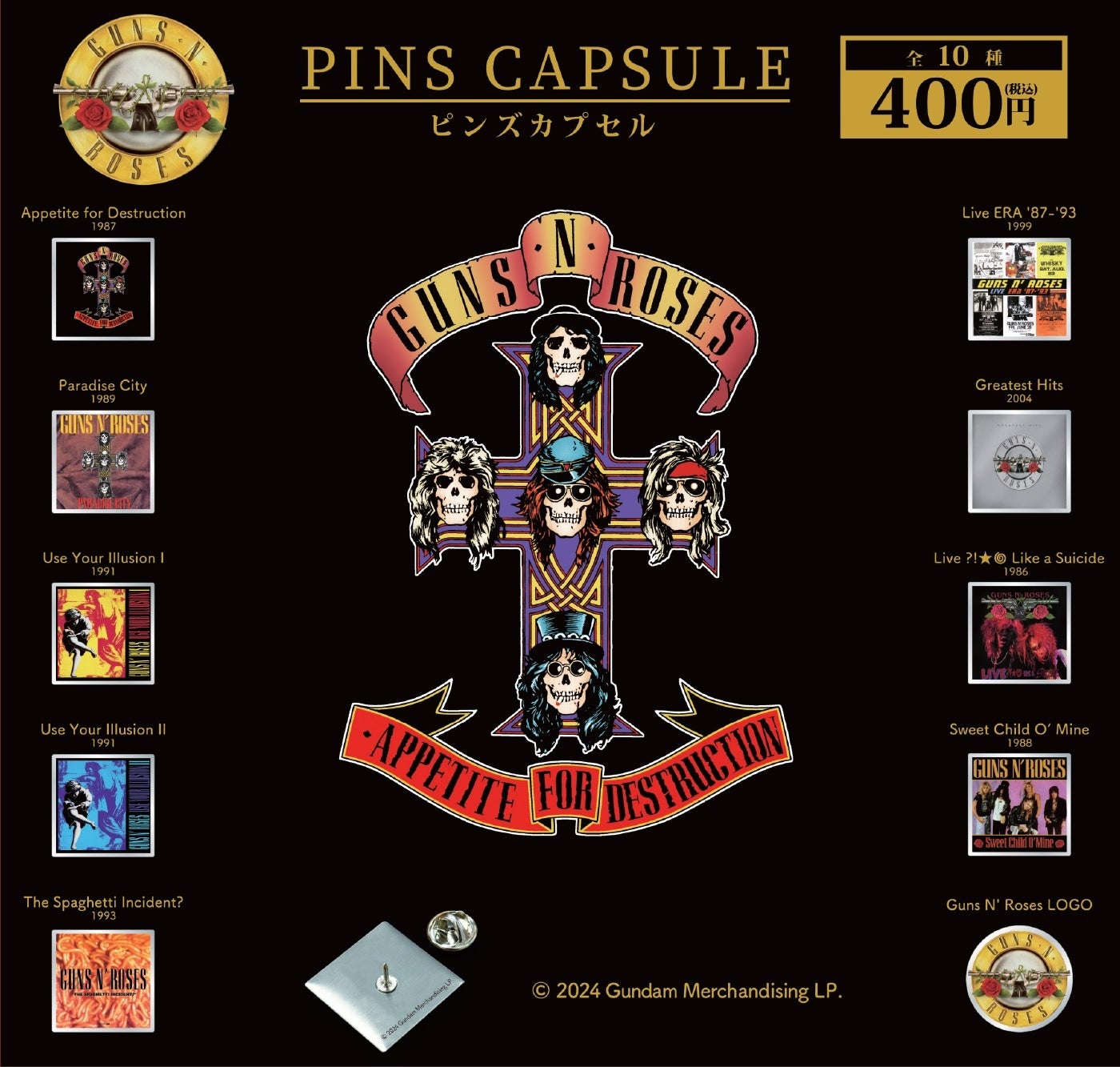 各アーティスト、厳選したアルバムジャケットやロゴ、アーティスト写真をデザインしたピンバッジ(ピンズ)が専用台紙と共にカプセル内に収納されており、コレクションにも最適です。