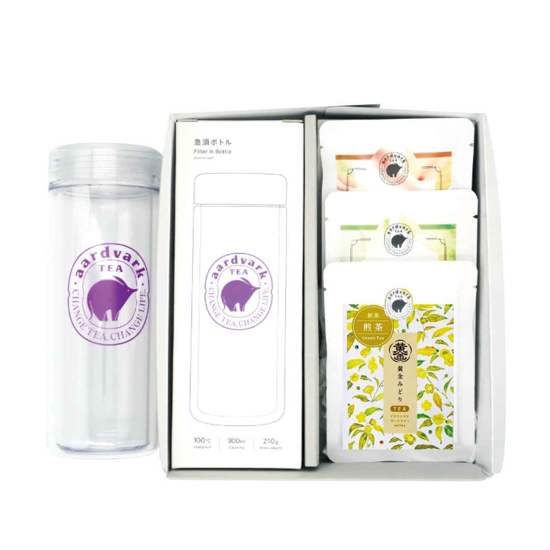 ●静岡県『アードバーク ティー』黄金みどりプレミアムセット(1セット/ボトル300ml+お茶3種入) 5,280円【小田急先行販売】