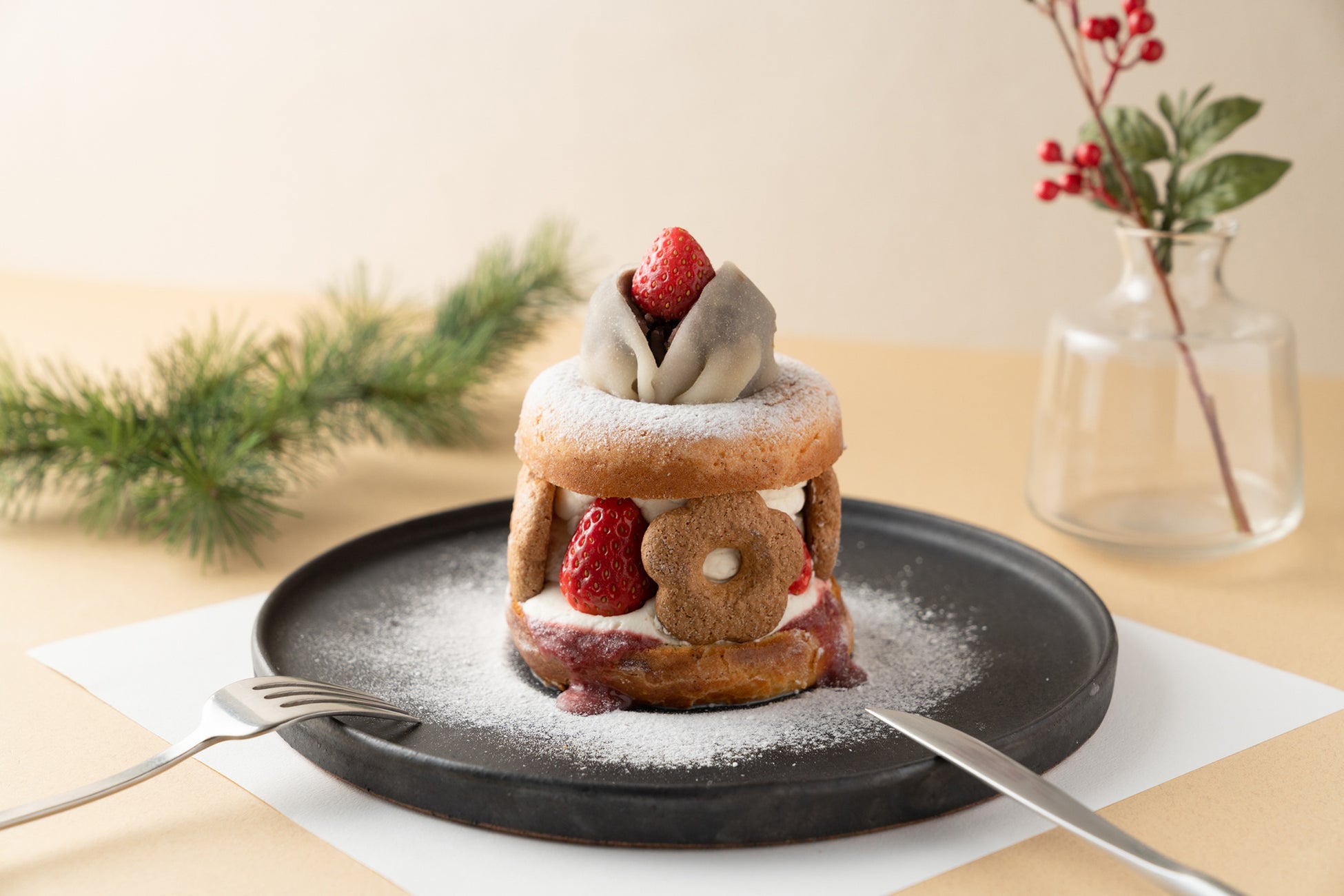 一番人気のドーナツメルトストロベリーにいちご大福を大胆にトッピング。
