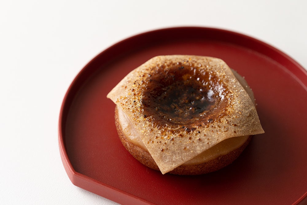 京名物 井筒八ッ橋を細かく砕き、りんごグレースにのせた新食感ドーナツ。