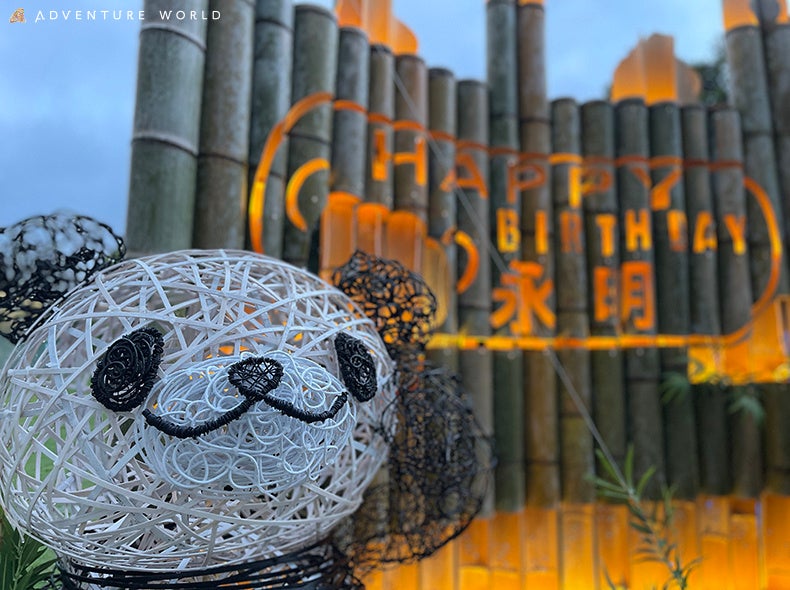 これまでパークの竹あかりデザインを手がけてきた演出制作・プロデュース会社「CHIKAKEN〈ちかけん〉」(熊本県/代表取締役 三城 賢⼠様)とコラボし、「永明(えいめい)」の30歳を祝うとともに、「パンダと竹」が照らす明るい未来を表現し製作しました。各所でワークショップを開催し、パークスタッフ、ゲスト、地域のみなさま、大阪府岸和田市のみなさま(パンダの食事用の竹は岸和田市の竹林から調達しています)その他多くのみなさまが製作に加わり完成しました。