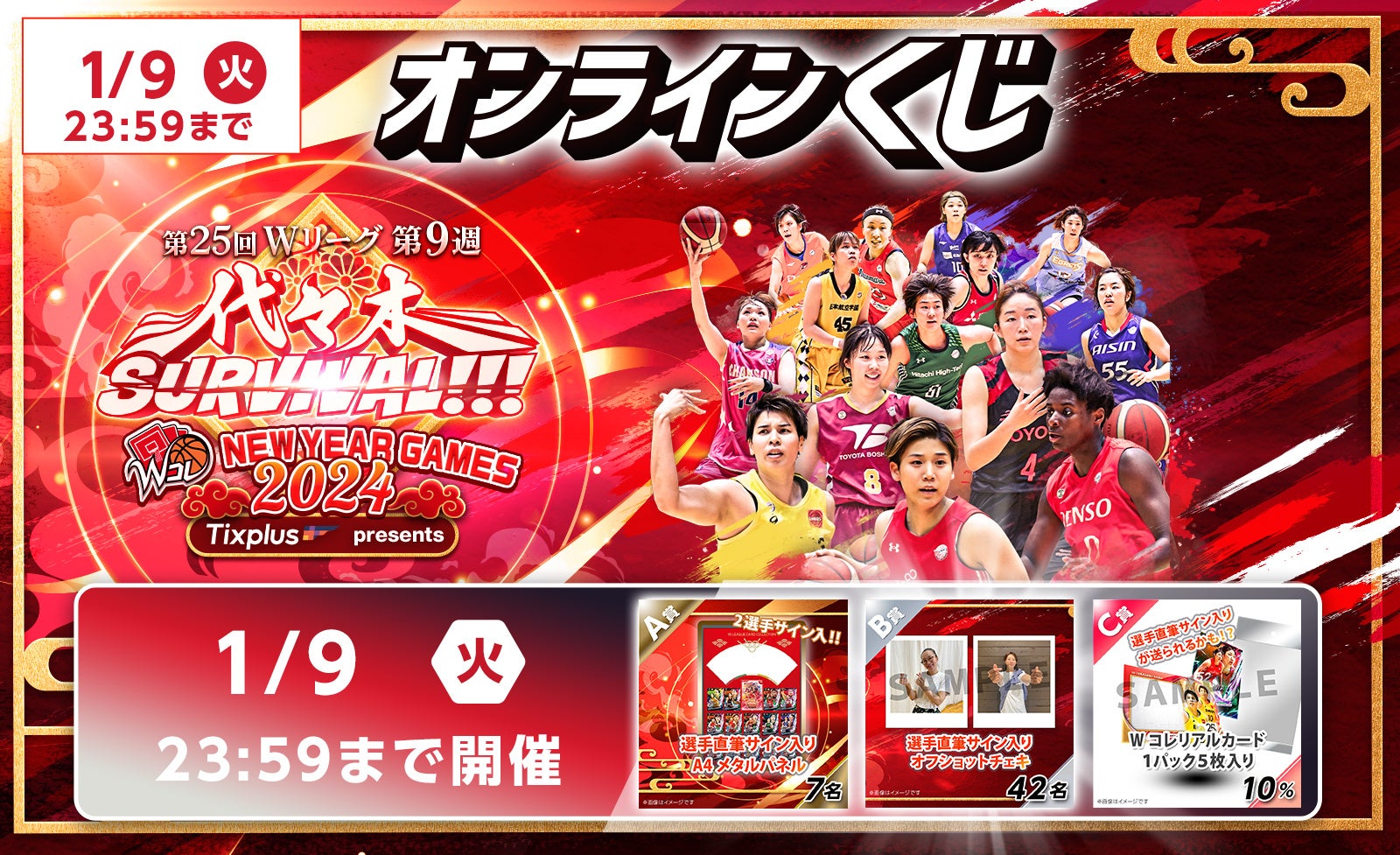 Tixplus presents「代々木 SURVIVAL!!!」は特別企画満載!オフショットチェキやレアグッズが当たるオンラインくじ、Wリーグ選手カードパック付きチケットを販売中!