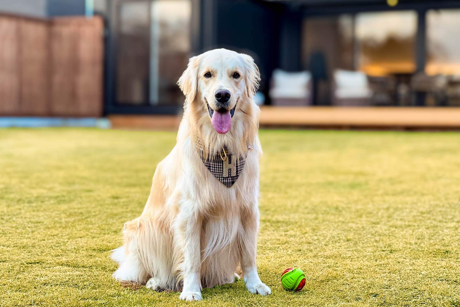 全6棟のうち4棟で愛犬とのご宿泊が可能。そのうち2棟には、約330㎡の広々とした天然芝のプライベートドッグランをご用意しています。足に優しい天然芝なので、小型犬から大型犬まで安心して走り回ることができ、愛犬の健康と安全に配慮した設計となっています。